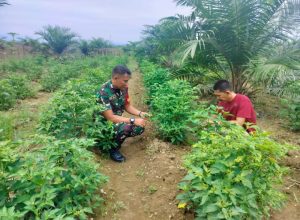 Aceh Tamiang – Bintara Pembina Desa (Babinsa) Koramil 05/Tamiang Hulu Sertu Ramayanto membantu perawatan tanaman cabe di wilayah Desa binaannya di lahan milik Bapak Abdul Wahab, Luas lahan 2 rante,di Desa Meunasah Paya, Kecamatan Manyak Payed, Kabupaten Aceh Tamiang. Sabtu (17/05/2025)