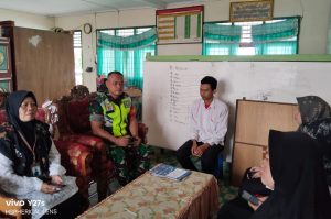 Aceh Tamiang – Babinsa Desa Sriwijaya Koramil 01/Kuala Simpang, Kodim 0117/Aceh Tamiang Serda Joko, melaksanakan komsos bersama Kepala Sekolah dan guru SMP N 2 Desa Sriwijaya, Kecamatan Kota Kuala Simpang, Kabupaten Aceh Tamiang. Senin (26/05/2025).