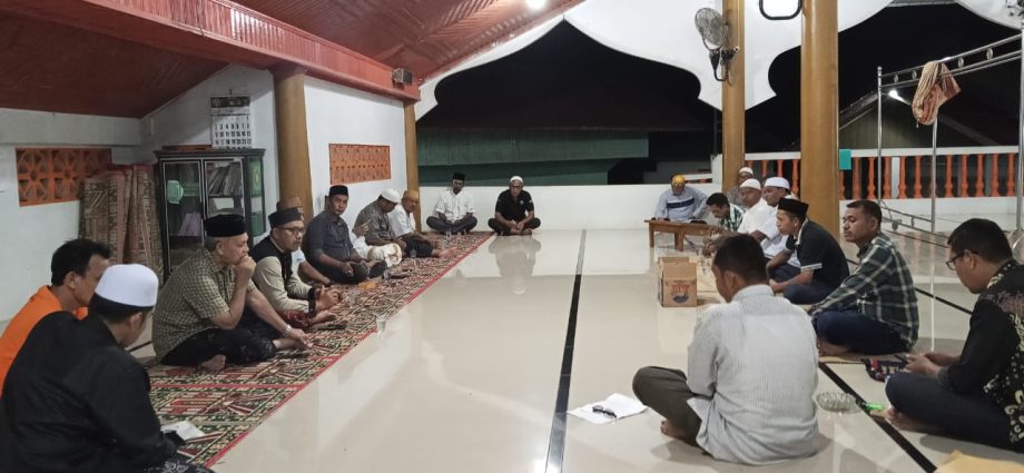 Keuchik Gampong Samakurok Zulfikar yang akrab disapa Joel Kopral pimpin langsung rapat pembentukan Tim atau panitia qurban untuk membahas persiapan penyembelihan hewan qurban yang akan dilaksanakan di halaman meunasah pada hari Jum’at (6/6/2025) mendatang.