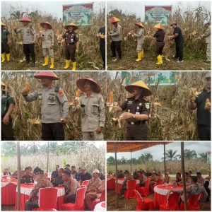 Subulussalam, Globaldetik.com. Kapolres Subulussalam AKBP Muhamad Yusuf, S.I.K. bersama jajaran menggelar panen jagung serentak Kuartal II di Kampong Suka Makmur, Kecamatan Simpang Kiri, Kota Subulussalam, suasana Hujan Kamis (5/6). Kegiatan ini dilaksanakan serentak secara nasional dan terhubung langsung melalui video konferensi dengan Kapolri Jenderal Listyo Sigit Prabowo, yang memimpin Panen Raya Jagung Nasional dari Kabupaten Bengkayang, Kalimantan Barat, didampingi oleh Presiden RI Prabowo Subianto, Menteri Pertanian Amran Sulaiman, serta Menteri Perdagangan Budi Santoso.(5 Juni 2025