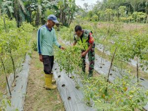 Aceh Tamiang – Sertu Abdul Rahman Babinsa Koramil 08/Rantau, Kodim 0117/Aceh Tamiang, membantu mengecek perkembangan tanaman cabe milik bapak Abdul Kodir di Desa Rantau Pauh, Kecamatan Rantau, Kabupaten Aceh Tamiang. Rabu (11/06/2025)