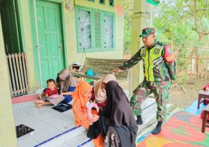 Aceh Tamiang – Bentuk upaya mendukung percepatan stunting di wilayah, Sertu Indar Mawan Babinsa Koramil 02/Karang Baru, Kodim 0117/Aceh Tamiang selalu hadir ditengah tengah masyarakat dalam pendampingan pelayanan kesehatan Posyandu balita yang diselenggarakan di Desa Alur Bemban, Kecamatan Karang Baru, Kabupaten Aceh Tamiang. Rabu (18/06/2025)