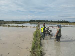 Aceh Tamiang – Babinsa Koramil 09/Banda Mulia Serka Erwan melaksanakan pendampingan petani pada pembajakan dan pengolahan lahan sawah di milik Bapak Umar ± 8 Rante di Kampong Besar, Kecamatan Banda Mulia, Kabupaten Aceh Tamiang. Jumat (27/06/2025).