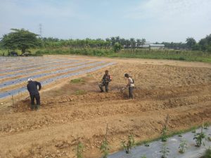 Dengan melaksanakan pendampingan dalam pembuatan bedengan tanaman Cabai di lahan milik Bapak Wagiman warga masyarakat desa binaan.