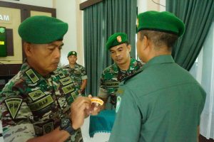Aceh Tamiang – Kepala Staf Kodim (Kasdim) 0117/Aceh Tamiang Mayor Cpm Lili Fitriadi memimpin upacara tradisi Personil Korps Raport Pindah Satuan bertempat di Aula Makodim 0117/Aceh Tamiang Jln. Lintas Medan B. Aceh Desa Sungai Liput, Kecamatan Kejuruan Muda, Kabupaten Aceh Tamiang. Jumat (25/07/2025)