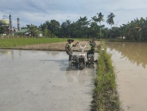 Aceh Tamiang – Babinsa Koramil 09/Banda Mulia Serka Erwan, melaksanakan Ketahanan Pangan (Hanpangan) dengan membantu membajak sawah menggunakan traktor di lahan milik Bapak Tarmuji di Desa Tanjung Kramat, Kecamatan Banda Mulia, Kabupaten Aceh Tamiang. Kamis (31/07/2025)