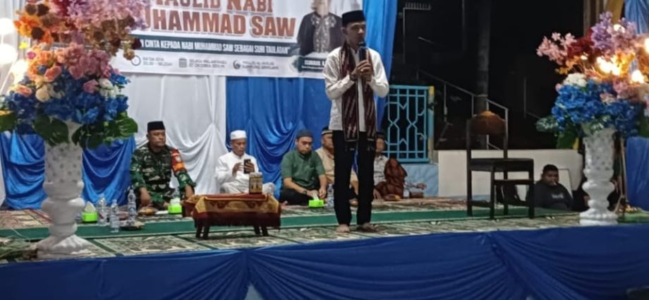 Acara maulidan yang berlangsung khidmat ini menghadirkan penceramah Ustad Arif Habibi Batu bara yang dalam tausiyahnya mengajak ummat Islam untuk menjadikan Nabi Muhammad SAW sebagai panutan dalam segala sisi kehidupan.