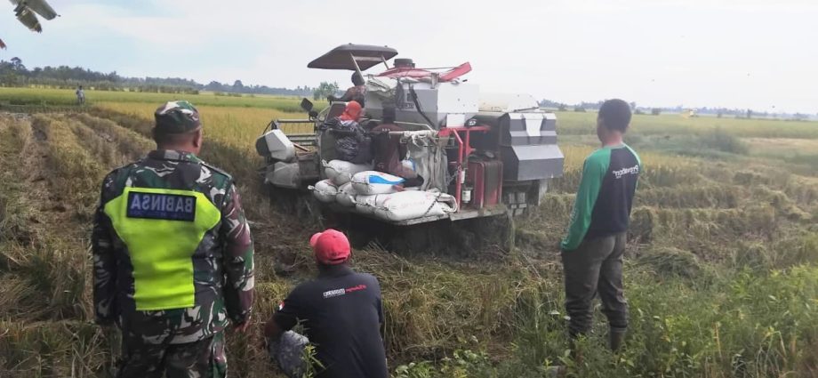 Aceh Tamiang – Babinsa Koramil 09/Banda Mulia Sertu Sugianto melakukan pendampingan panen padi menggunakan alat modern berupa traktor pemanen padi (Combine Harvester). Kegiatan ini berlangsung di lahan milik Suhardi di Desa Telaga Meuku Dua Kecamatan Banda Mulia, Kabupaten Aceh Tamiang. Sabtu (11/10/2025).