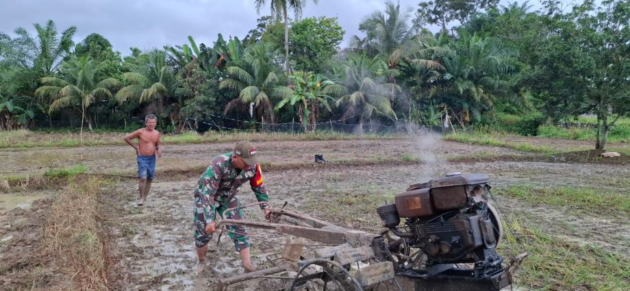 Aceh Tamiang – Babinsa Koramil 06/Manyak Payed Serda Zulham melaksanakan Ketahanan Pangan (Hanpangan) dengan membantu membajak sawah menggunakan traktor di lahan milik Anto di Desa Bukit Panjang Sa, Kecamatan Manyak Payed, Kabupaten Aceh Tamiang. Selasa (14/10/2025).