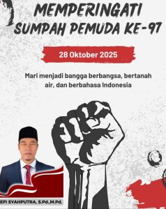 Aceh -Kota Subulussalam,Globaldetik.com dalam rangka memperingati Hari Sumpah Pemuda ke-97, Ketua Kota Subulussalam, MPD Rafi Syahputra S.Pd M.Pd, mengajak masyarakat untuk menjadi bangga berbangsa dan berbahasa Indonesia.27/10/2025.