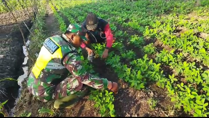 Aceh Tamiang – Dalam upaya mendukung program pemerintah di bidang ketahanan pangan, Babinsa Koramil 05/Tamaing Hulu Sertu Suhendra Afrizal melaksanakan kegiatan pendampingan Poktan pembersihan gulma pada tanaman kacang Tanah yg menginjak usia 5 Minggu milik Bapak Samsudin seluas 5 rante di Desa Aras Sembilan. Kecamatan Bandar Pusaka, kabupaten Aceh Tamiang. kamis (20/11/2025).
