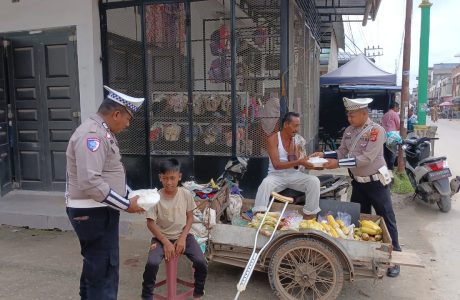 KBO Lantas Aceh Utara Ipda Irvan Membagikan 110 Nasi Kotak kepada Tukang Becak dan Pedagang Kaki Lima2024-12-13