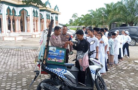 Melalui Program Geubibu KBO Lantas Polres Aceh Utara Ipda Irvan Bagikan Bagi Es Krim Gratis kepada Santri2024-10-11