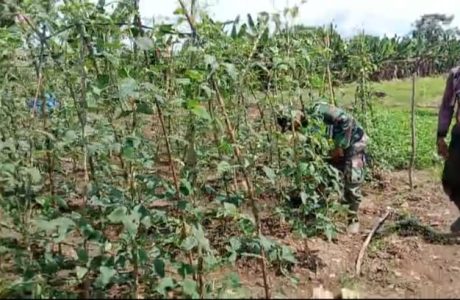 Babinsa Bantu Petani Rawat Tanaman Kacang Panjang Di Desa Binaan