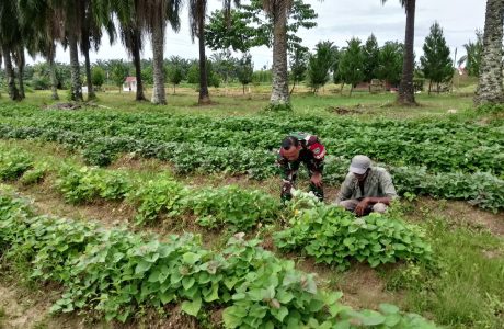 Dukung Petani Ubi Jalar, Babinsa Koramil 06/Manyak Payed Dampingi Petani Merawat Tanaman