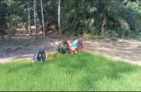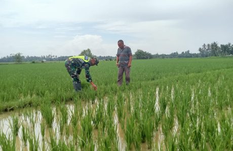 Babinsa Dampingi Petani Mengecek Pertumbuhan Tanaman Padi
