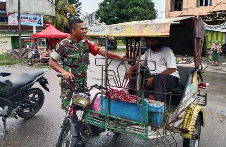 Komsos Dengan Tukang Becak Babinsa Ingatkan Agar Selalu Tertib Berlalulintas