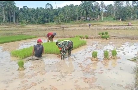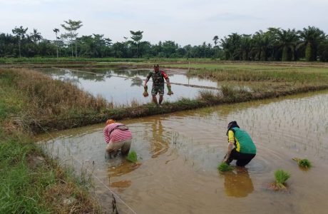 Sinergi TNI Dan Petani, Babinsa Turun ke Sawah Bantu Petani Tanam Padi