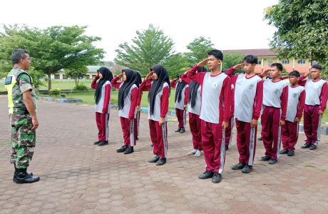 Tanamkan Kedisiplinan, Babinsa Melatih PBB di SMP Negeri Kuala Simpang