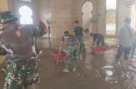 Kodim 02/Krb, Yon TP 899/BSG dan Yon Zipur 10 Bahu Membahu Bersihkan Mesjid Pondok Pesantren Darul Mukhlisin Pasca Banjir2025-12-22