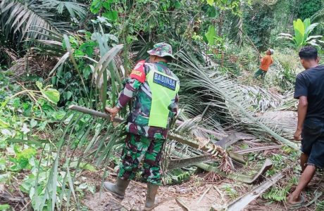 Babinsa Melaksanakan Kegiatan Gotong Royong Bersama Masyarakat Di Wilayah Binaan