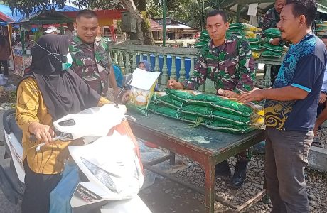 Personel Koramil 05/Tamiang Hulu Jual Beras Murah (SPHP)
