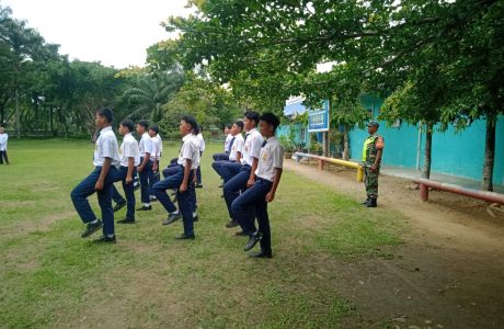 Tanamkan Kedisiplinan, Babinsa Melatih PBB Di SMP Swasta Darma Patra.
