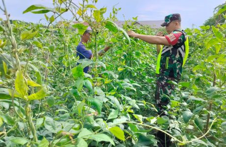 Bantu Rawat Tanaman Kacang Panjang,Babinsa Dampingi Petani Di Desa Binaan