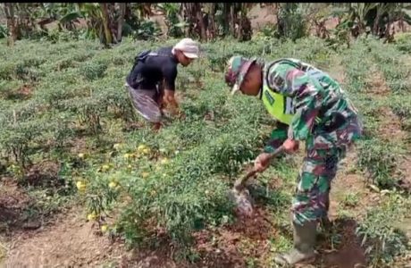 Babinsa Bantu Petani Bersihkan Gulma Tanaman Cabai