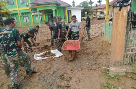 Koramil 05/Tamiang Hulu Bersama Anggota Yonkav 11/MSC Bantu Bersihkan Puskesmas Pasca Banjir2025-12-16