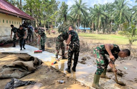 Pasca Banjir Dan Tanah Longsor, Anggota Koramil 01/Kuala Simpang Bersihkan Kantor Yang Berlumpur2025-12-14